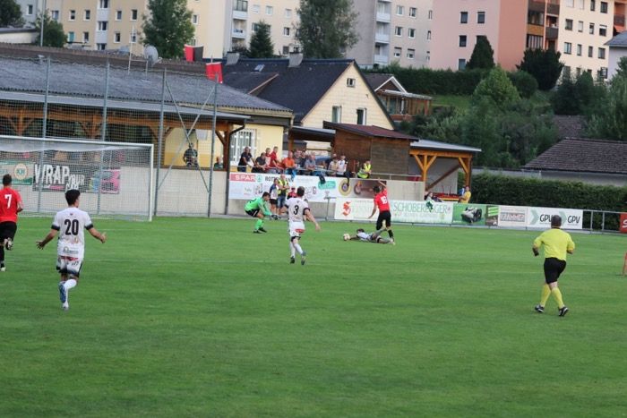 Die Hausherren legten gleich ordentlich los und gingen in der 5. Minute durch Senad Buljubasic in Führung. Nach einem Freistoß der Gnaser kam ein weiter Pass zu Senad Buljubasic, der unweit der Mittellinie in abseitsverdächtiger Position startete und unaufhaltsam aufs Tor der Gnaser zog. MIt einem Flachschuss bezwang er Torhüter Michael Sammer zum 1:0. Nach einem von Matthias Schadler getretenen Eckball konnten die Gnaser auch bald den Ausgleichstreffer bejubeln. Daniel Luttenberger-Haas war bei der 2. Stange per Kopf zur Stelle - 1:1 nach 13 Minuten. In der 25. Minute gingen die Rottenmanner nach einem Eckball durch Kapitän Philipp Seiser per Kopf mit 2:1 in Führung. Und abermals konnten die Gnaser durch einen Kopfballtreffer von Raphael Kniewallner nach einem Eckball von Matthias Schadler ausgleichen (31.). Ein Foul an Gabriel Puntigam im Strafraum wurde von SR Birnstingl nicht geahndet. Pausenstand 2:2.