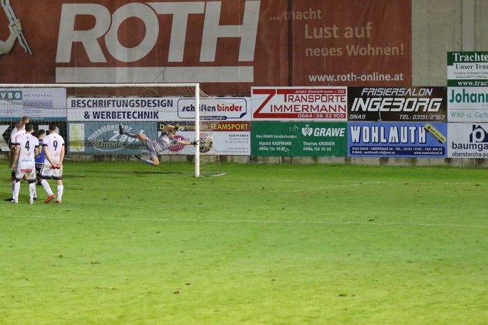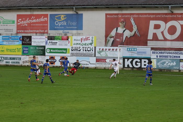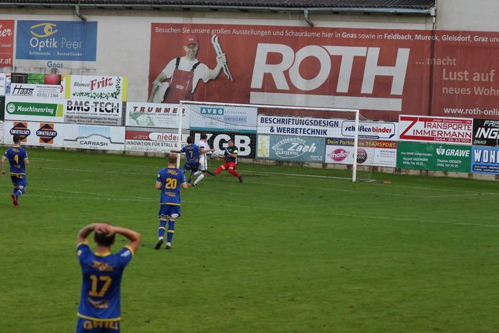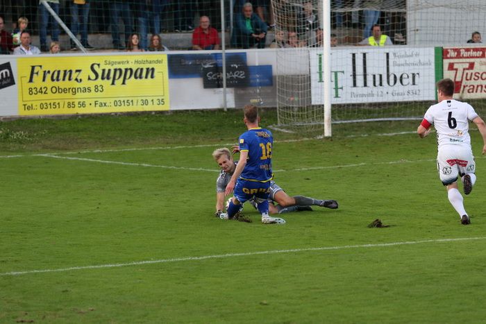 Wenig später kann Gröblinger den Schuss von Gabriel Puntigam per Fußabwehr klären, den Nachschuss vergibt Thomas Suppan (34.). Halbzeit 1:0 für Gnas.