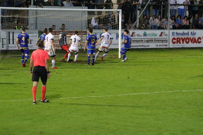 Der Flachschuss von Mark Riegel zieht am langen Eck vorbei (22.).