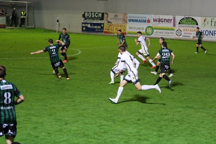 Der kurz zuvor eingewechselte Gabriel Puntigam bringt einen Pass zur Mitte...
