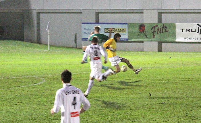 Mit herrlichem Distanzschuss wollte Matthias Schadler den gegnerischen Tormann überraschen, doch der Ball ging nur sehr knapp am linken Pfosten vorbei ins Torout. Das alles spielte sich innerhalb von zwei Minuten ab !