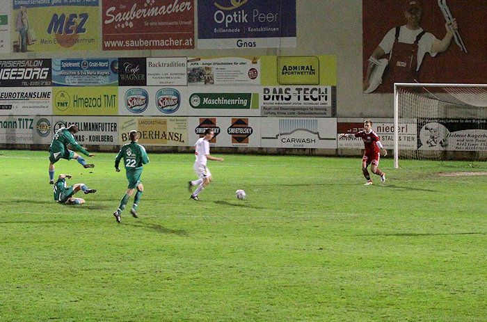 Kniewallner vergibt nach Pass von B.Puntigam (54.), der Ball wird zur Ecke befördert.