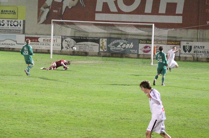 Nach einer Gnas-Kombination lief Daniel Haas in der 86. Minute in den gegnerischen Strafraum und wurde von Torhüter Tafilaj regelwidrig vom Ball getrennt. Klarer Elfmeter und die gelbe Karte für den Torhüter. Diese Chance ließ sich der Elferspezialist nicht entgehen und verwandelte sicher zum 4:0. Es war dies bereits sein sechster (!) verwandelte Elfmeter in dieser Saison !