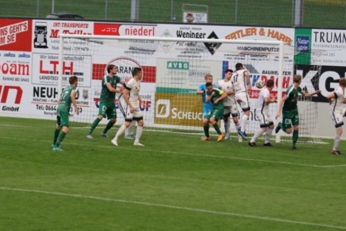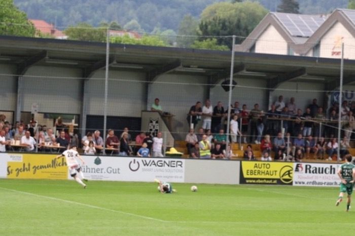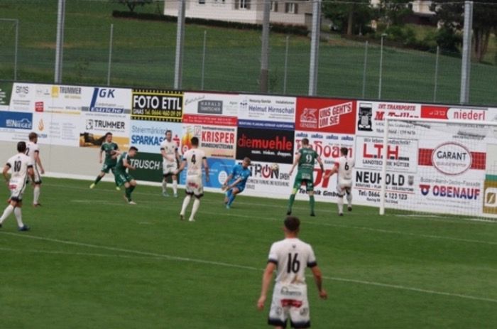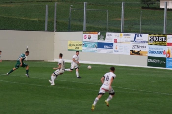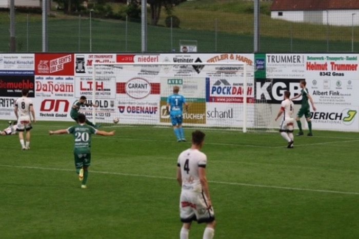 Die Gnaser hielten sich vor 950 Zusehern im ersten Spielabschnitt sehr gut gegen den Favoriten und fanden auch zwei Tormöglichkeiten durch Matthias Schadler (Freistoß) und Gabriel Puntigam (Goalie wehrte Schuss zur Ecke ab) vor. Pausenstand 0:0.