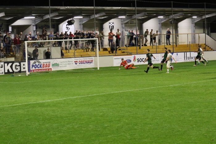 Jonas Lang (Nr. 19) erzielt das Tor zum 4:2-Endstand für die Gäste aus Lebring.