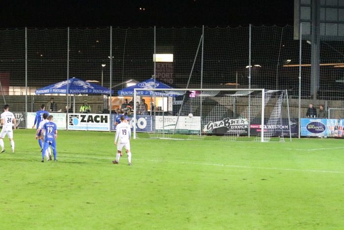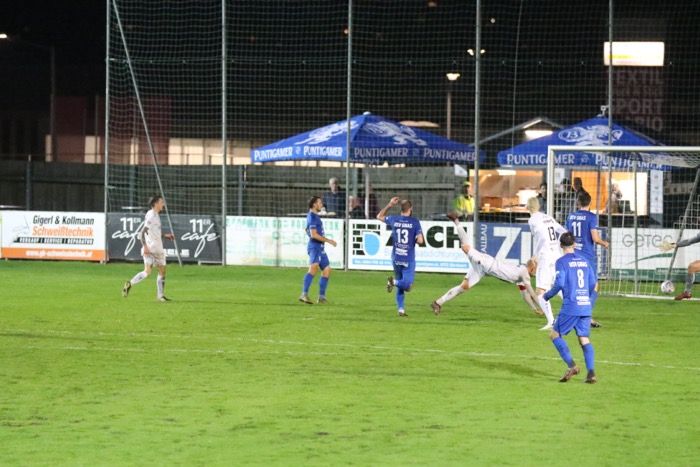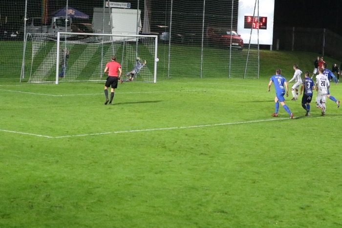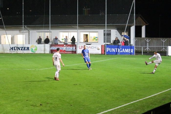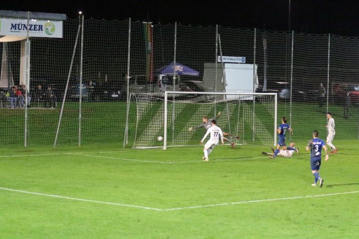 ....abgefälscht von der Gnaser Abwehr, via Innenlatte ins Netz.