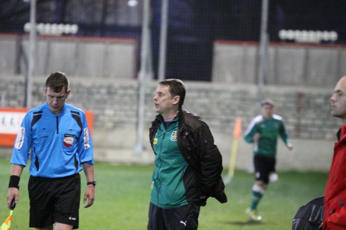 Weiz-Choach Ing. Hölzl an der Outlinie. Daneben 1. SR-Assistent Moser.