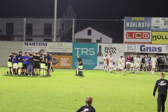 Das Spiel ist aus. Hängende Köpfe bei den Gnasern, während die Gäste feiern.