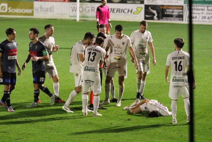 USV Gnas: Alexander Roth, Raphael Kniewallner, Thomas Suppan (88. Marko Trummer), Jonas Kölli, Tobias Kölli, Sebastian Roth (72. David Friedl), David Fink (72. Daniel Hierzer), Daniel Zimmermann, Stefan Strohmaier (72. Clemens Lerner), Fabian Horvat (79. Marc Pöllitsch), Johannes Unegg.