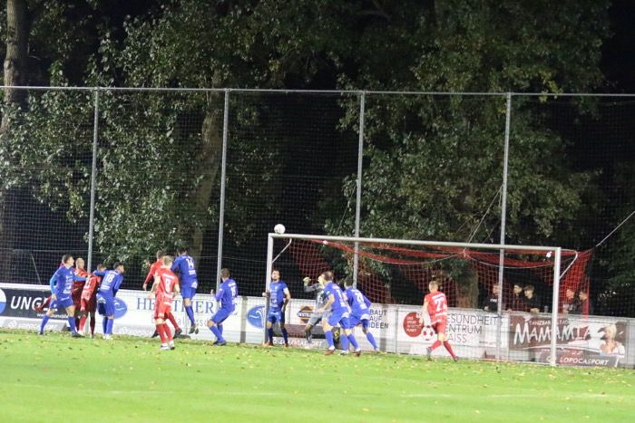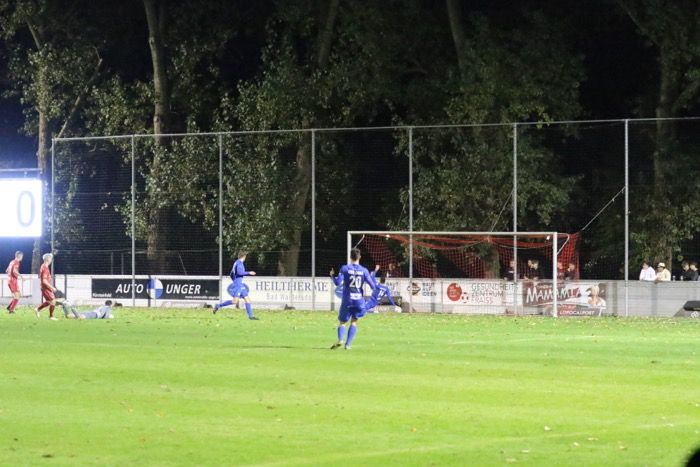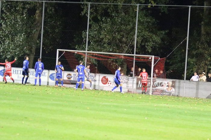 ...zum 1:0 ins Netz. Der Torschütze (links, Nr. 26) dreht jubelnd ab.
