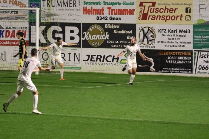 In der 52. Minute verletzte sich Gnas-Verteidiger Tobias Kölli bei einem Zweikampf und musste ausgewechselt werden. Es kam Marc Pöllitsch für das Mittelfeld, Daniel Zimmermann nahm nun die linke Außenverteidigerposition ein. Bei einem 35m-Freistoß des Gästespielers Nikola Vuksanovic hatte Gnas-Goalie Michael Sammer Mühe, den wuchtigen Schuss im Nachfassen zu entschärfen (60.). Bei einem weiteren Distanzschuss war Michael Sammer ebenso auf dem Posten (66.). Die Vorentscheidung in diesem Spiel fiel in der 74. Minute. Marc Pöllitsch passte im Strafraum zu David Fink, dessen Schuss wehrte der gegnerische Torhüter ab, Raphael Kniewallner kam an den Ball und staubte zum 3:0 ab. In der Schlussphase kamen die Gäste zu zwei guten Chancen. Einmal konnte Gnas-Verteidiger David Friedl den Schuss von Ziga Skoflek von der Torlinie wegkratzen, das zweite Mal war Goalie Michael Sammer bei einem Schuss von Florian Pinnitsch mit einer Abwehr erfolgreich.