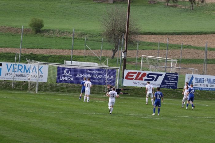 Die Gnaser lieferten den Hartberg Amateuren einen tollen Kampf und ließen in der ersten Halbzeit wenig zu. Ein Freistoß von Daniel Rossmann zog knapp über die Querlatte (6.). Die beste Chance hatten die Gnaser durch Leo Kaufmann, der einen Eckball von Tobias Kölli an die Latte köpfelte (21.). Eine weitere Chance fand Leo Kaufmann in der 36. Minute nach einem schönen Spielzug vor, der gegnerische Torhüter war aber auf dem Posten. Die jungen Hartberger fanden vor allem durch Eckbälle Möglichkeiten vor, konnten aber den Gnaser Goalie nicht bezwingen. Zwingende Chancen der Hausherren gab es in den ersten 45 Minuten nicht. Pausenstand 0:0.