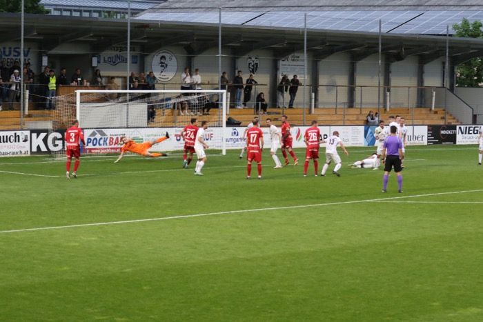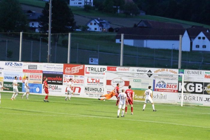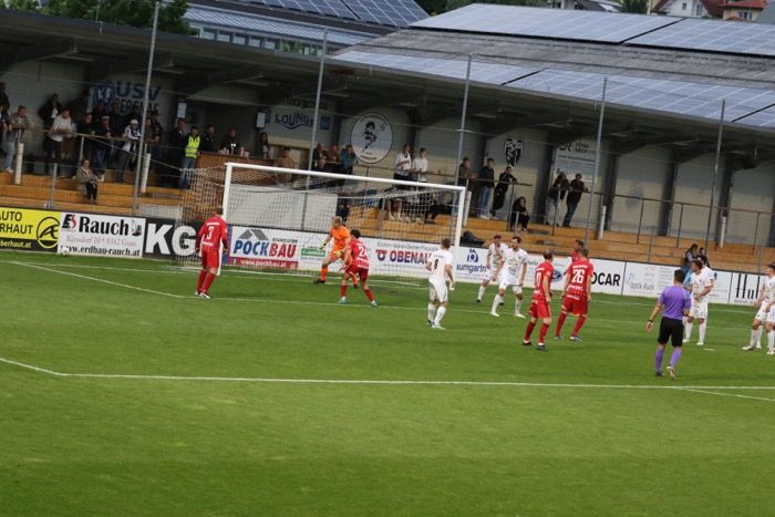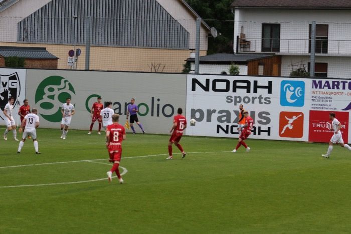 Ein Freistoß von Oliver Bacher am Sechzehner...