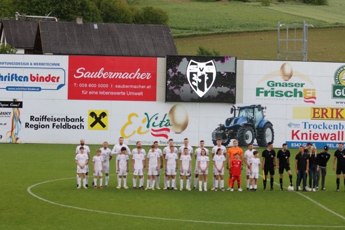 Vor dem Spiel gab es die Überreichung von neuen Dressen an die Gnaser U13 von der Firma Albert Fink, Autohaus in Gnas. Die U13-Spieler liefen mit den Mannschaften aufs Feld.