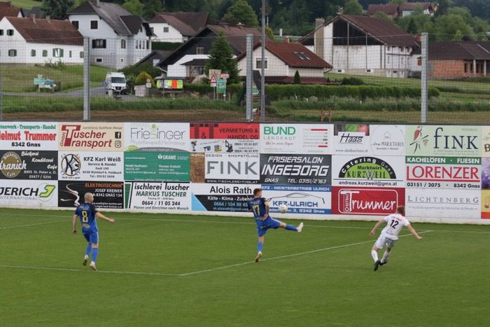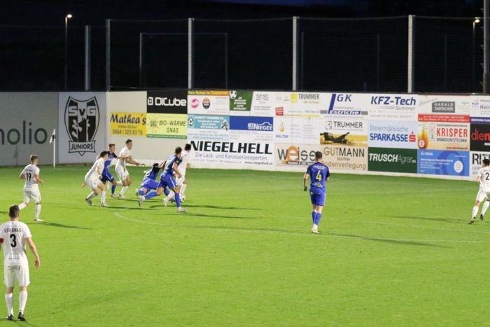 Auch in der 2. Halbzeit ein abwechslungsreiches Spiel auf Augenhöhe. In der 57. Minute folgte ein starker Auftritt des Gnaser Mittelfeldspielers Daniel Rossmann. Er spielte sich über die rechte Seite in den Strafraum, dicht an der Toroutlinie entlang und überhob den Brucker Tormann zum 2:1 für Gnas. Ein sehenswertes Tor. Lange konnten sich die Gnaser Fans über die Führung nicht freuen. Die Gäste dribbelten sich über die linke Seite in den Strafraum und Jakob Erlsbacher stellte auf 2:2 (65.). In weiterer Folge kamen beide Mannschaften zu Chancen, wobei die Gäste ein Chancenplus verzeichnen konnten. Gnas-Verteidiger Marco Trummer schied in der 69. Minute verletzt aus und wurde durch Jonas Kölli ersetzt.