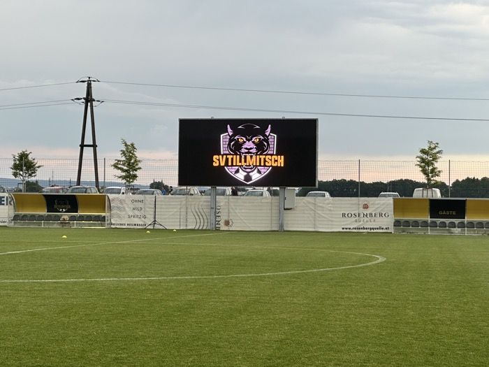 Die große Anzeigetafel im Tillmitscher Stadion.