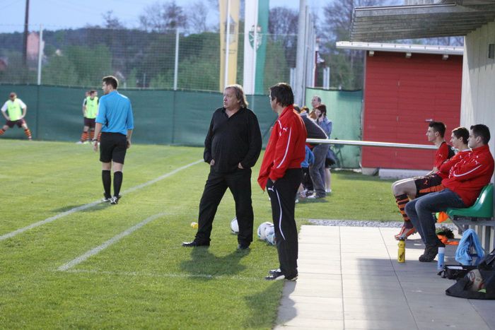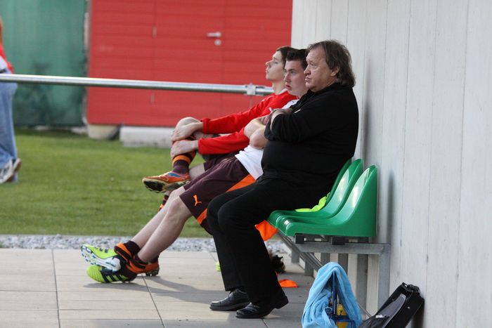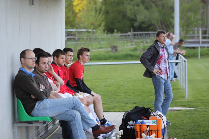 Pischelsdorf-Trainer, Dir. Franz Pendl auf der Betreuerbank.