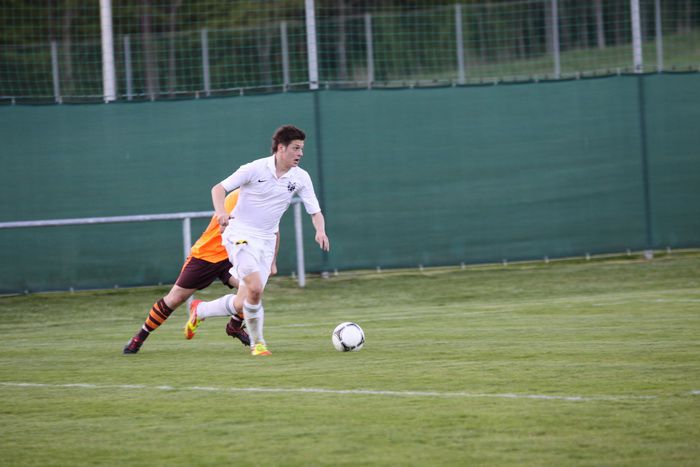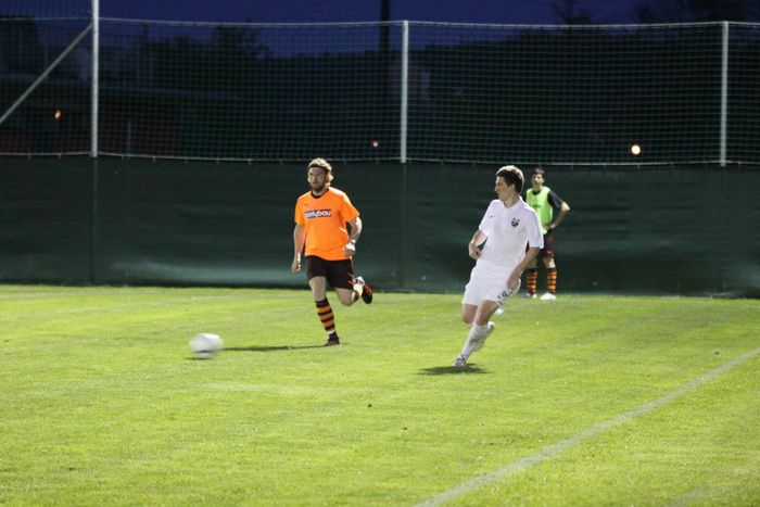 Raphael Kniewallner (rechts), nach Auslandsaufenthalt direkt aus Italien angereist, bei einem Kopfball.