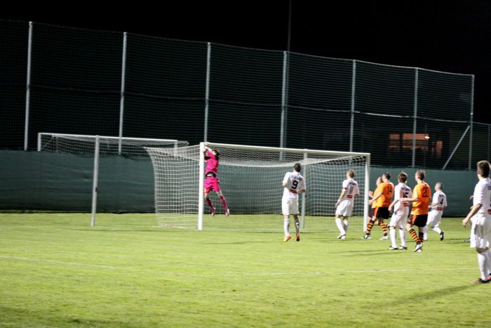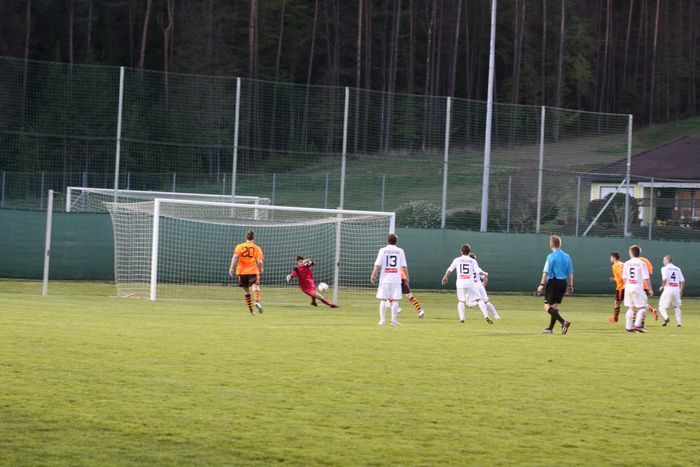 Auf der Gegenseite versuchte Bernd Tödling nach Landl-Foul sein Glück mit einem Freistoß aus rund 25 m. Der Ball senkte sich gefährlich hinter der Querlatte aufs Außennetz.