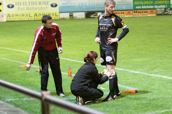 Schaffer wird an der Outlinie versorgt. Links Co-Trainer DI Wagner.