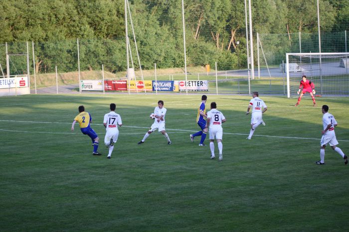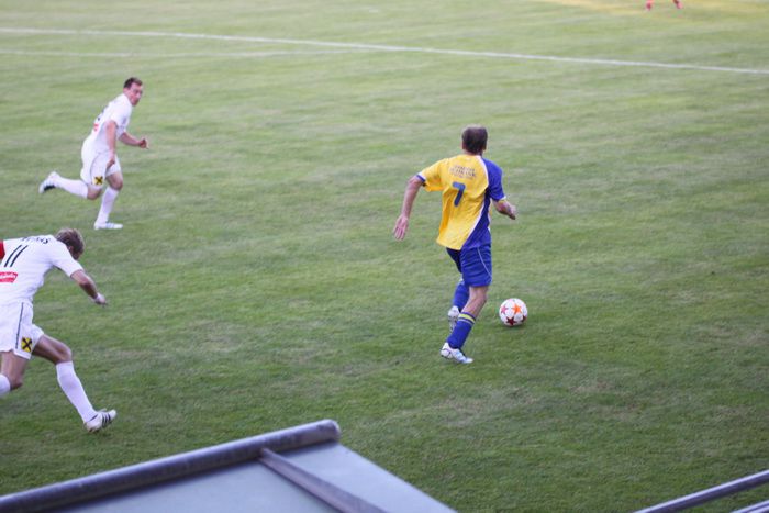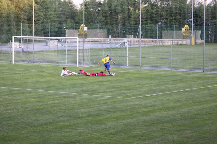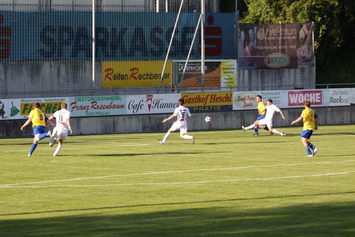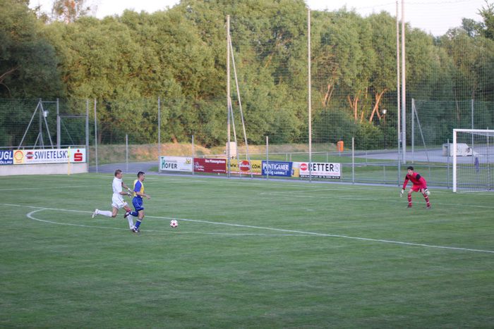 Kaum eine Minute später konterten die Hausherren und Kramberger lief plötzlich allein auf unser Tor, Geigl konnte Kramberger nicht stoppen, Roth lief ihn entgegen und nahm ihm zum Glück den Ball ab. Eine 100%-Chance der Pöllauer war dahin.