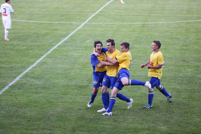 ....großer Jubel um den Torschützen.