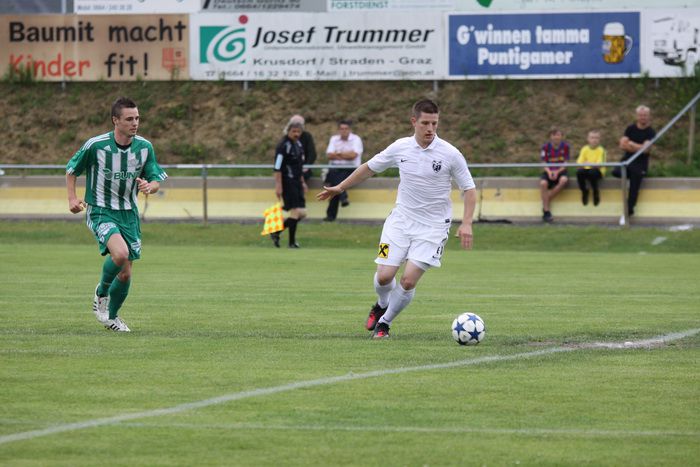 In der vorletzten Meisterschaftsrunde mussten die Gnaser auswärts zum Tabellenletzten und Absteiger Straden anreisen. Die Ausgangslage war vor dem vorläufig letzten Derby zwischen diesen beiden Mannschaften klar. „Die Gnaser müssen gewinnen, die Stradner können gewinnen“, so der Platzsprecher der Hausherren. Rund 350 Zuseher wollten bei diesem so wichtigen Spiel für die Gnaser dabei sein. Bei den Gnasern fehlten das zentrale Mittelfeldduo Wohlmuth (gesperrt) und Obendrauf (verletzt).