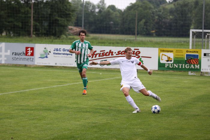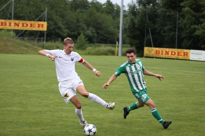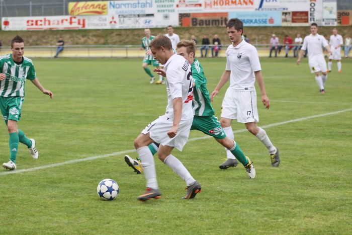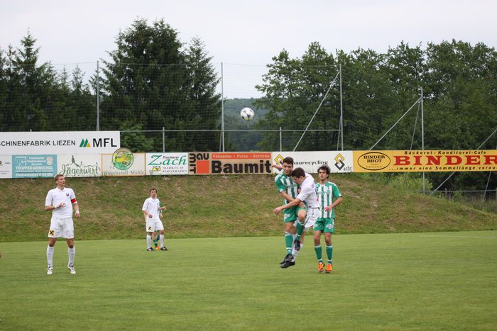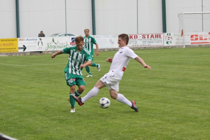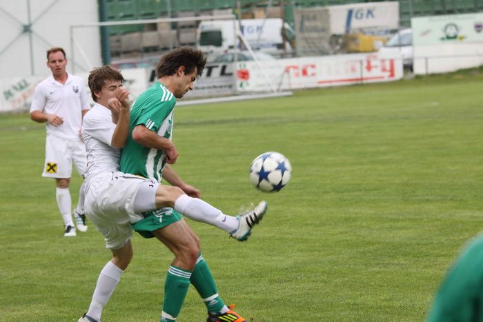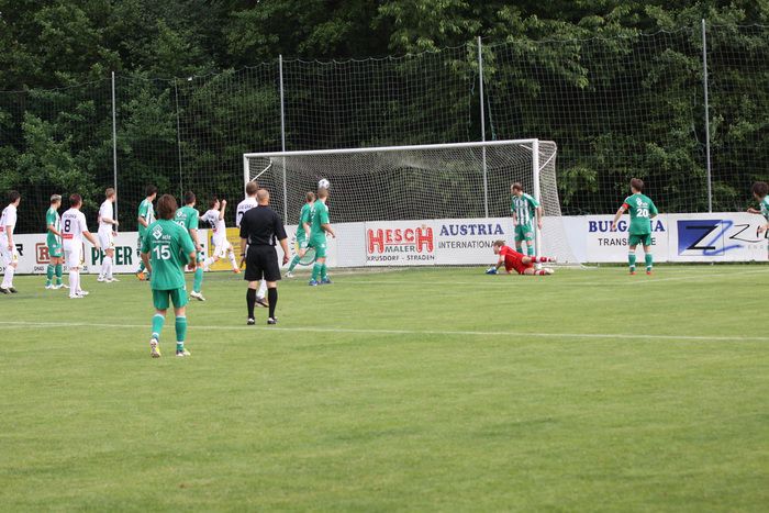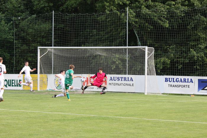 Alfred Geigl köpfelt einen Freistoßball von Matthias Schadler neben das Tor (30.).