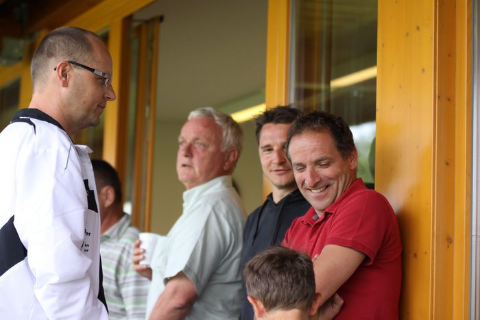 Peter Puntigam (rechts), ein langjähriger Gnas-Spieler mit Gnaser Funktionäre.