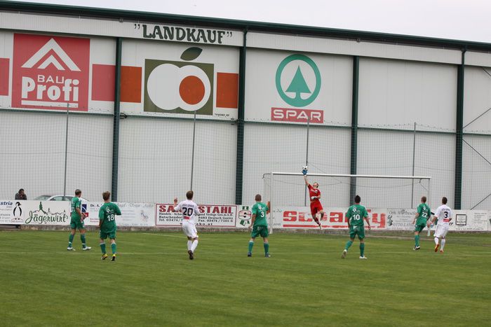 Bereits in der 1. Minute musste sich Gnas-Keeper Roth bei einem Freistoß von Hopfer (rechts) strecken.