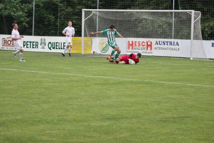 Bei einem Konter über die rechte Seite kamen die Hausherren in der 15. Minute zu einer guten Möglichkeit. Nach einem Stanglpass scheiterte Markus Ranftl mit dem schwachen Schuss an Torhüter Roth.