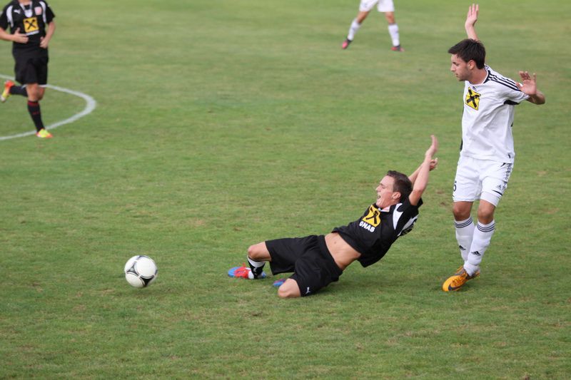 90. Minute: Deronjic liegt am Boden, die Ilzer reklamieren Elfer, SR Kollegger läßt weiterspielen.