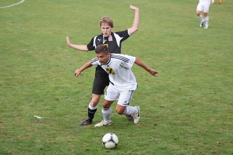 Rene Obendrauf (links) im Kopfballduell mit Sebastian Lueger.