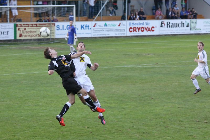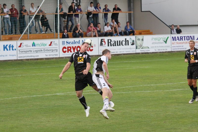 Johannes Fink beim Kopfballduell mit Kogler.