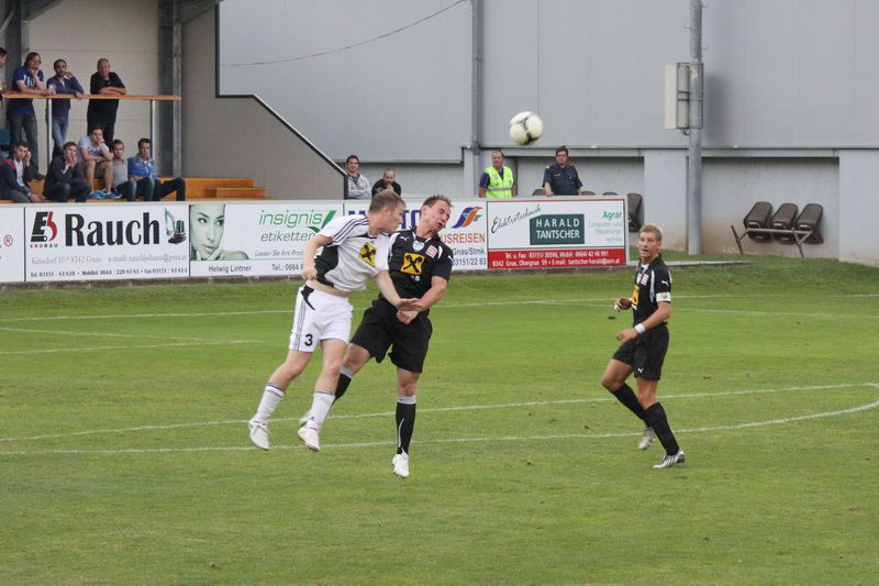 Gnas-Innenverteidiger Alfred Geigl beim Kopfballduell gegen Schützenhöfer.