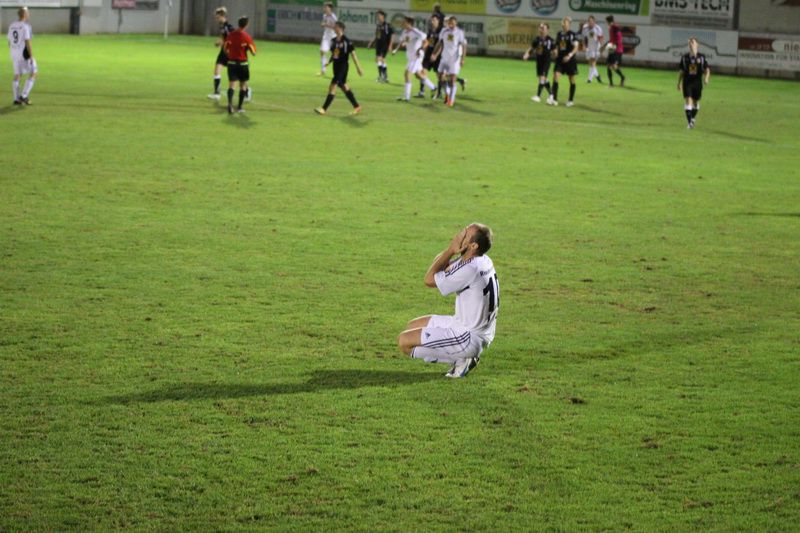 Christoph Haas ärgert sich über die vergebene Kopfballchance.