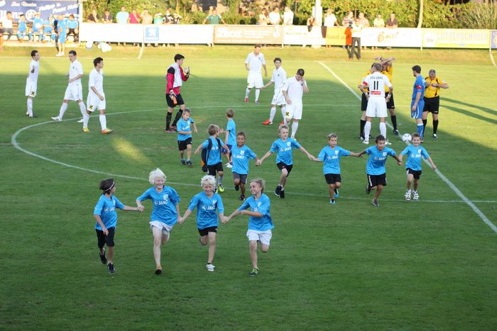 Die Kinder stürmen vom Spielfeld.