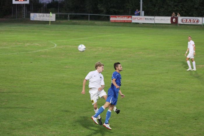 Gnas-Innenverteidiger Alfred Geigl springt höher als Patrick Mild.