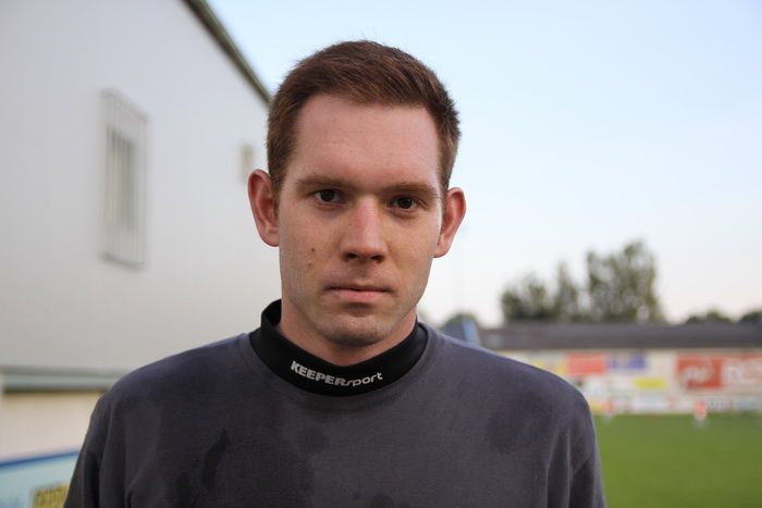 Torhüter Harmuss hält einen Kniewallner-Schuss (36.).