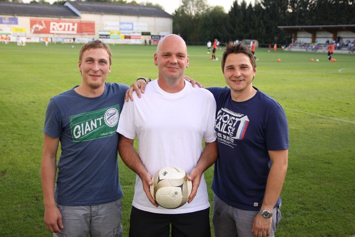 Gottfried Trummer vom Sponsor FRANTO nimmt den Ehrenanstoß vor.