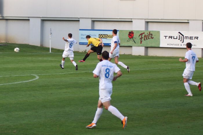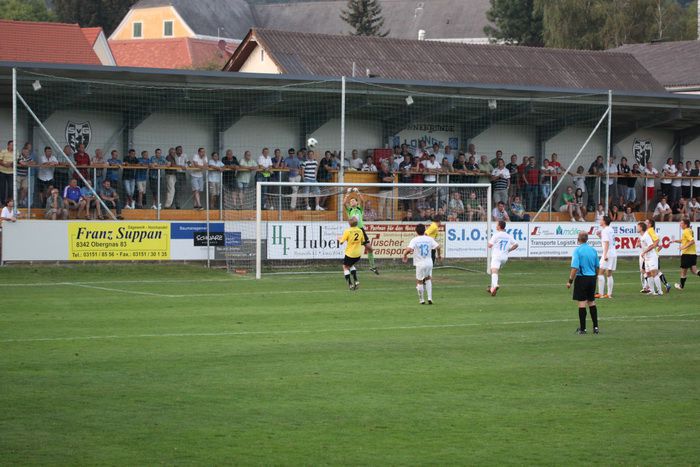 In der 7. Minute waren wieder die Gnaser dran. Geigl machte einen weiten Abschlag auf die linke Seite, Zimmermann nahm den Ball an und passte flach und scharf zur Mitte. Kniewallner rutschte am Leder vorbei, Frannach Kapitän Haubenwallner, der neben Kniewallner mitgelaufen war, beförderte den Ball zur Ecke.