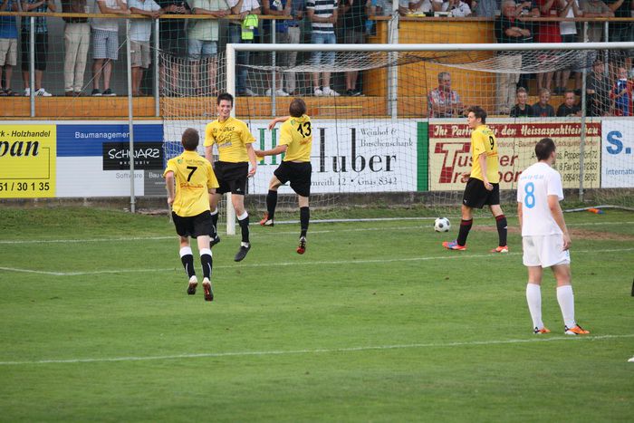 In der 31. Minute war der Bann jedoch gebrochen und die Gnaser konnten erstmals jubeln. Kniewallner setzte sich auf der rechten Seite durch, passte zur Mitte, Matthias Schadler legte zurück zum anstürmenden Christian Schadler, der mit einem wuchtigen Schuss von der Strafraumgrenze den gegnerischen Torhüter zum 1:0 bezwingen konnte.