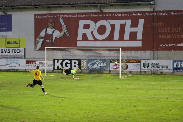 Den Schlusspunkt in diesem Match setzte Gnas-Stürmer Daniel Haas in der 91. Minute, der einen Foulelfmeter zum 3:0 verwandelte. Zuvor wurde Verteidiger Klenner vom herausgeeilten Frannach-Keeper im Strafraum gefoult. SR Stockreiter zeigte sofort auf den Elferpunkt und Goalie Harmuss die rote Karte.