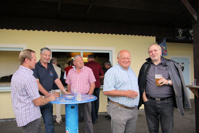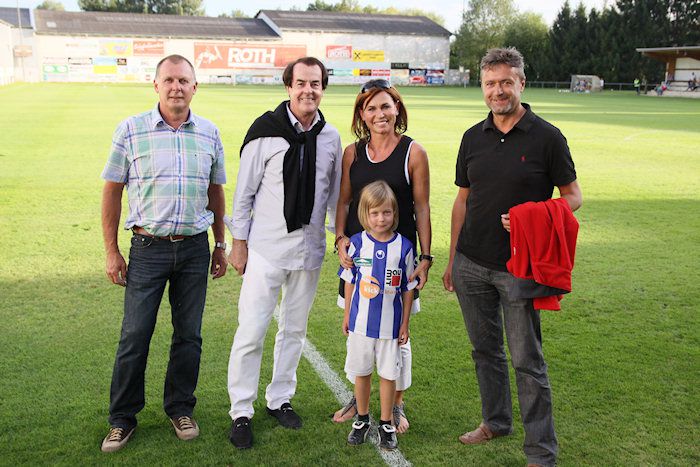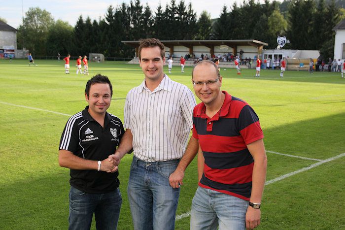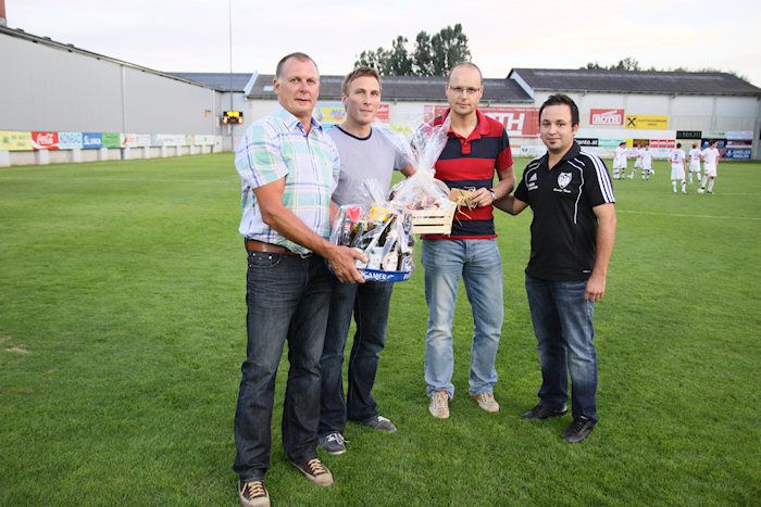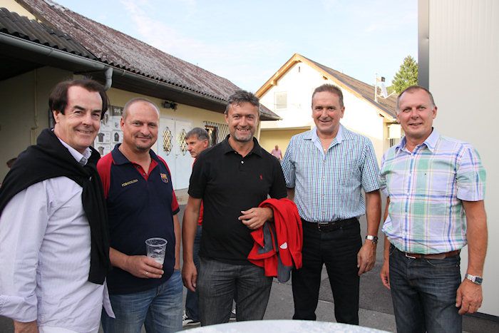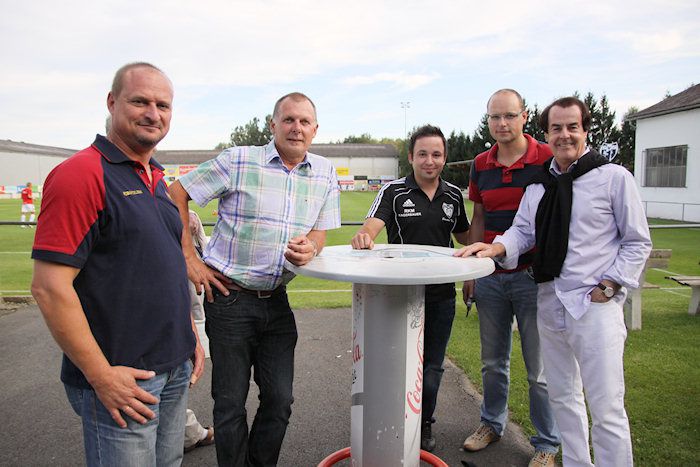 Matchsponsor, Saubermacher-Chef, KommRat Hans Roth (rechts) mit Gnaser Funktionären und Saubermacher-Disponent Franz Rauch.