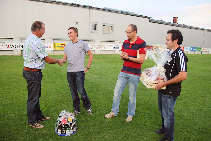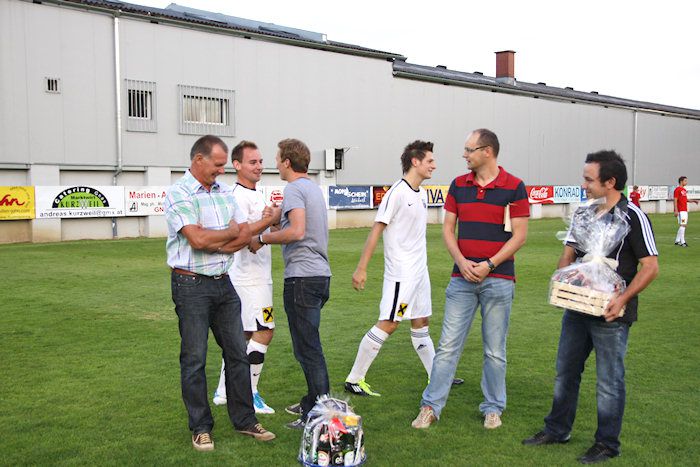 In der Pause wurde der langjährige Gnas-Verteidiger, der 28-jährige Markus Rauch von Vorstand und Spielern in den Fußball-Ruhestand verabschiedet. Platzsprecher Hans Walzl würdigte in einer Laudatio seine Verdienste um den Gnaser Fußball. Rauch wurde am 12.08.1990 beim Steirischen Fußballverband angemeldet und spielte rund 250 Meisterschaftsspiele für den USV Gnas. Sein Debüt in der Gnaser Ersten Mannschaft feierte Rauch am 10.06.2000 beim Auswärtsspiel gegen Großklein. Der Aufstieg mit dem USV Gnas in die Steirische Landesliga in der Saison 2000/01 war sein größter Erfolg. Das letzte Spiel absolvierte Rauch am 11.06.2011 im Gebietsliga-Spiel gegen St.Marein/Graz, wo er noch ein wunderschönes Tor erzielte. 21 Jahre lang war Rauch mit großem Einsatz für den Gnaser Fußball tätig.