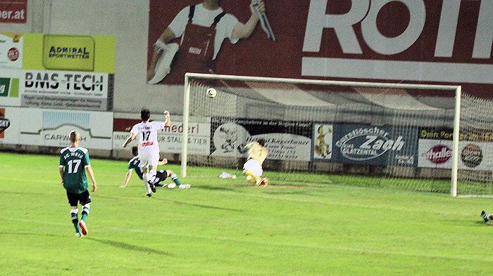 In der 86. Minute startete Christian Kölldorfer einen Sololauf und schloss mit schönem Schuss ab. Torhüter Walcher konnte den satten Schuss nur wegschlagen, Kniewallner kam zum Abstauben um einen Tick zu spät, ein Verteidiger konnte gerade noch zur Ecke retten.