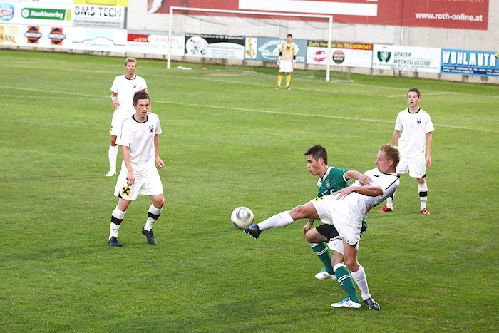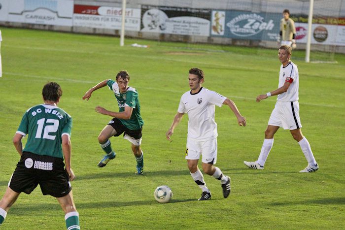 In der Anfangsphase gab es je eine gute Tormöglichkeit. Neuzugang, Heimkehrer Christian Fink fand die erste Chance für die Gastgeber in der 5. Minute vor, Weiz-Torhüter Walcher konnte seinen Schuss entschärfen. Im Gegenzug vergab Gutensohn nach Zuspiel von Gruber eine gute Möglichkeit.
