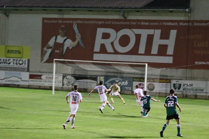 In der 51. Minute wurde Christian Fink ideal eingesetzt und zog allein Richtung Weiz-Tor. Doch statt selbst zu schießen, passte er nach rechts zum mitgelaufenen Kniewallner, doch der Pass war nicht optimal, sodass diese Riesenchance dahin war. Den darauf folgenden Eckball für die Gnaser setzte Verteidiger Christian Schadler wuchtig per Kopf über die Querlatte. Ein weiterer Kopfball, diesmal von Daniel Haas, nach Freistoß von Wohlmuth, verfehlte ebenfalls nur knapp das gegnerische Gehäuse.