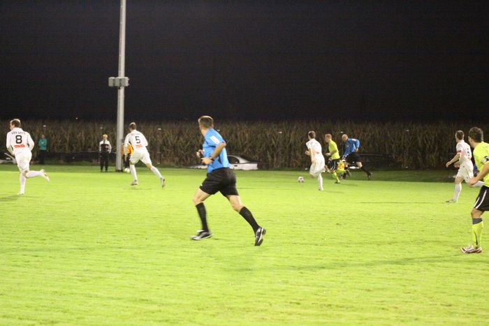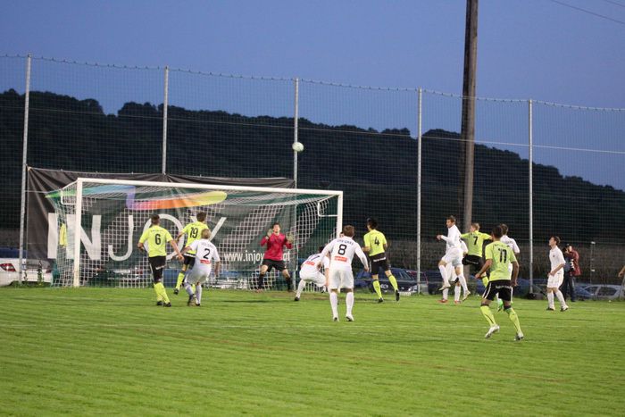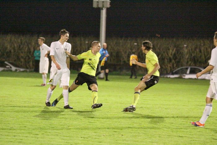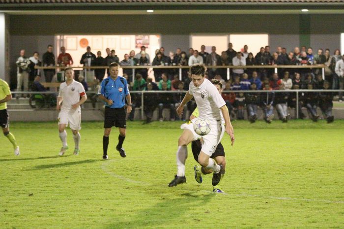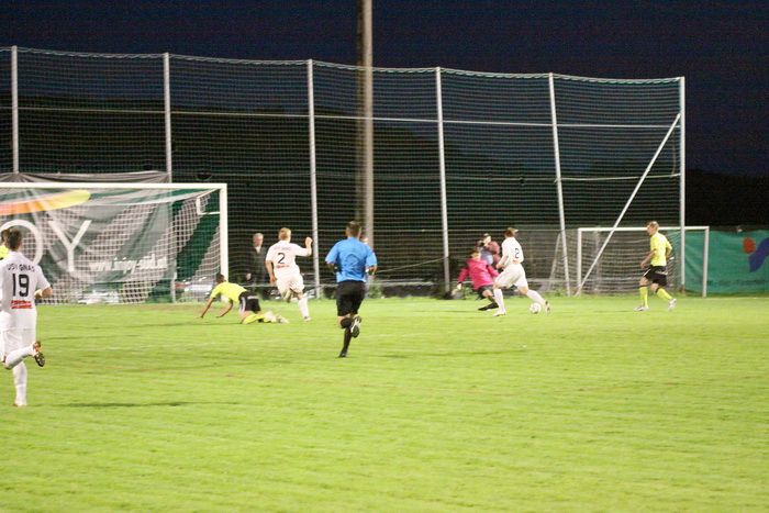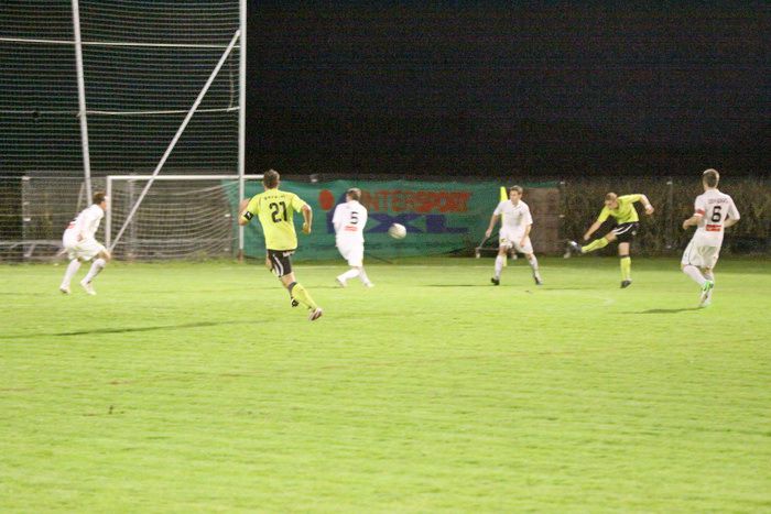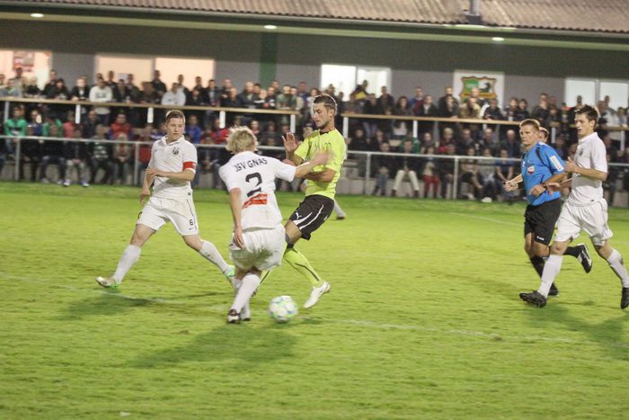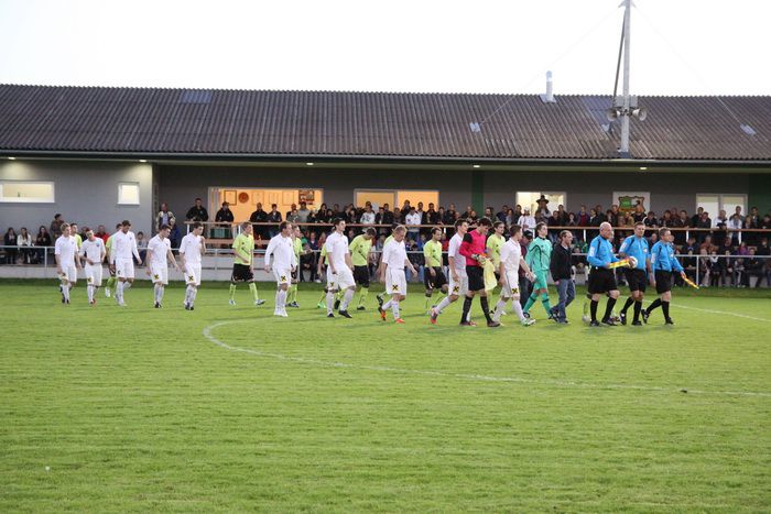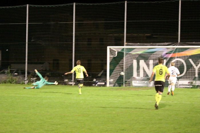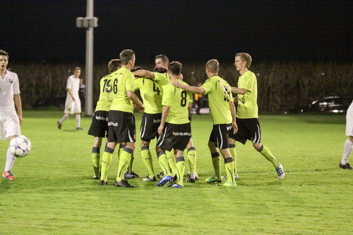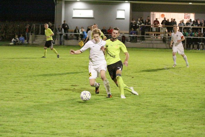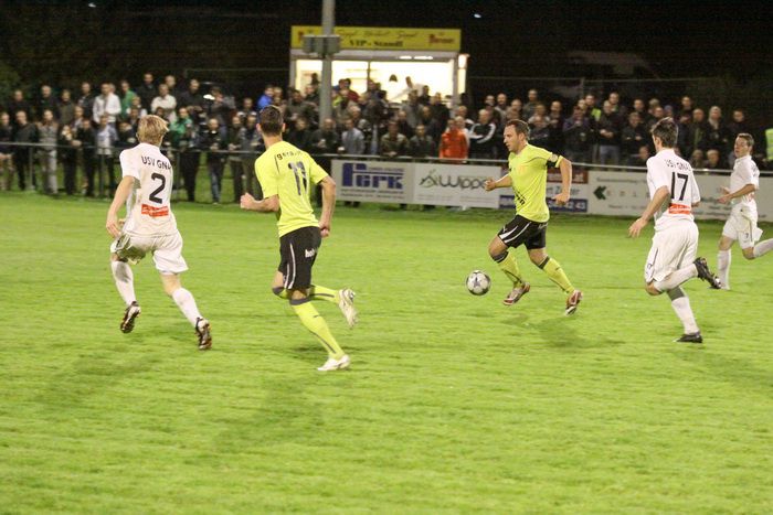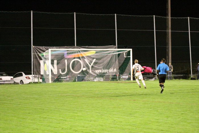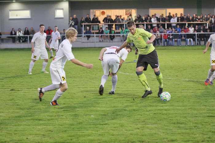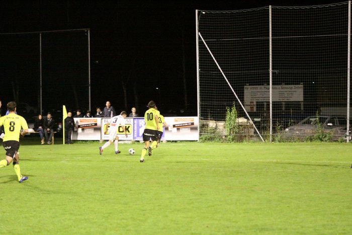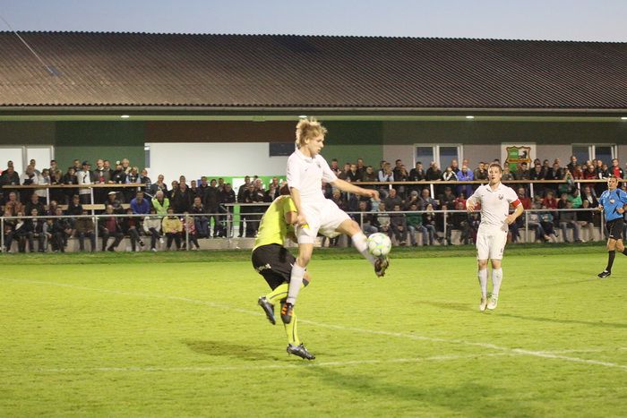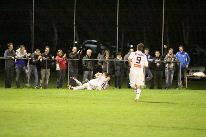 Entgegen dem Spielverlauf gelang den Hausherren in der 39. Minute der Führungstreffer. Auf der rechten Seite bekam Florian Thomann den Ball und stürmte Richtung Gnas-Strafraum, mit einem Hacken ließ er Gnas-Verteidiger Zimmermann ins Leere laufen und mit schönem Schuss vom Sechzehner gab er Torhüter Roth das Nachsehen. Riesenjubel bei den heimischen Spielern und Fans und verdutzte Gesichter bei den Gnasern. Das war auch schon die 1:0-Pausenführung für die Hausherren.