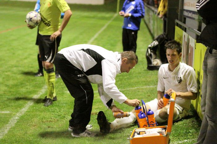 Christian Schadler wird vom Gnaser Teambetreuer Weinhandl behandelt.